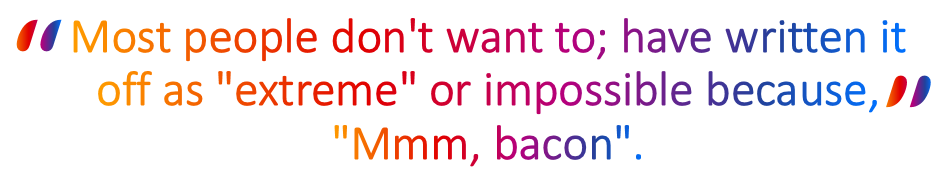 Someone wanting to turn vegan is almost there. Most people don't want to; have written it off as "extreme" or impossible because "Mmm, bacon".