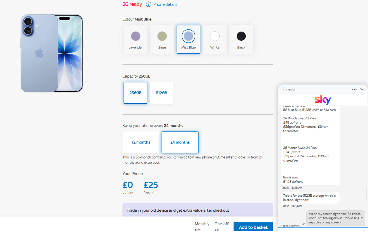 So, instead I suggest I cancel this order and instead order an iPhone 17 in mist blue. That's showing currently as in stock, delivery tomorrow.